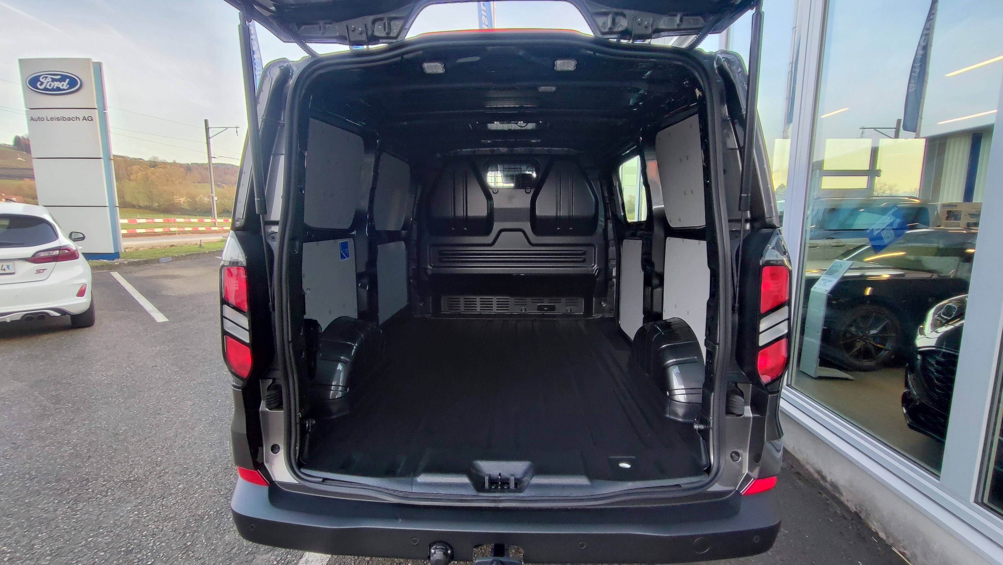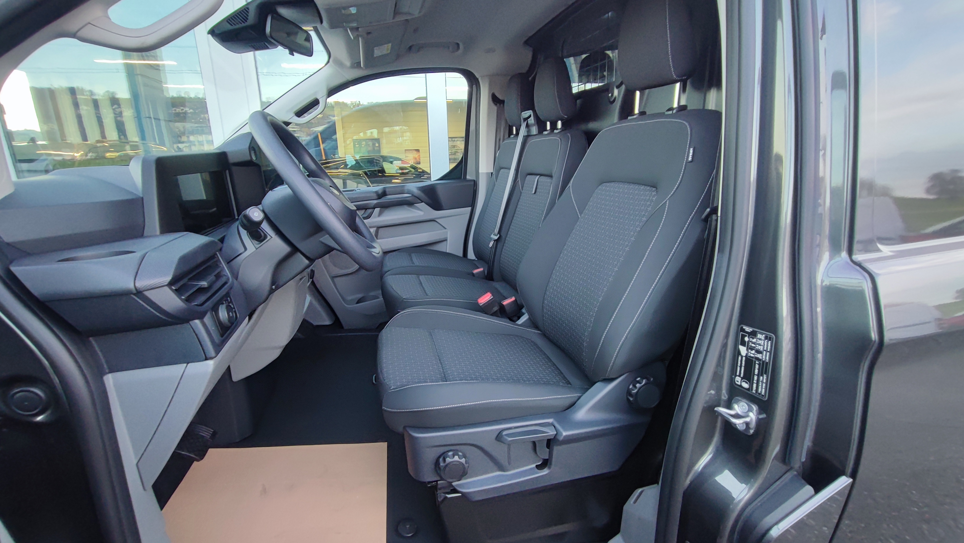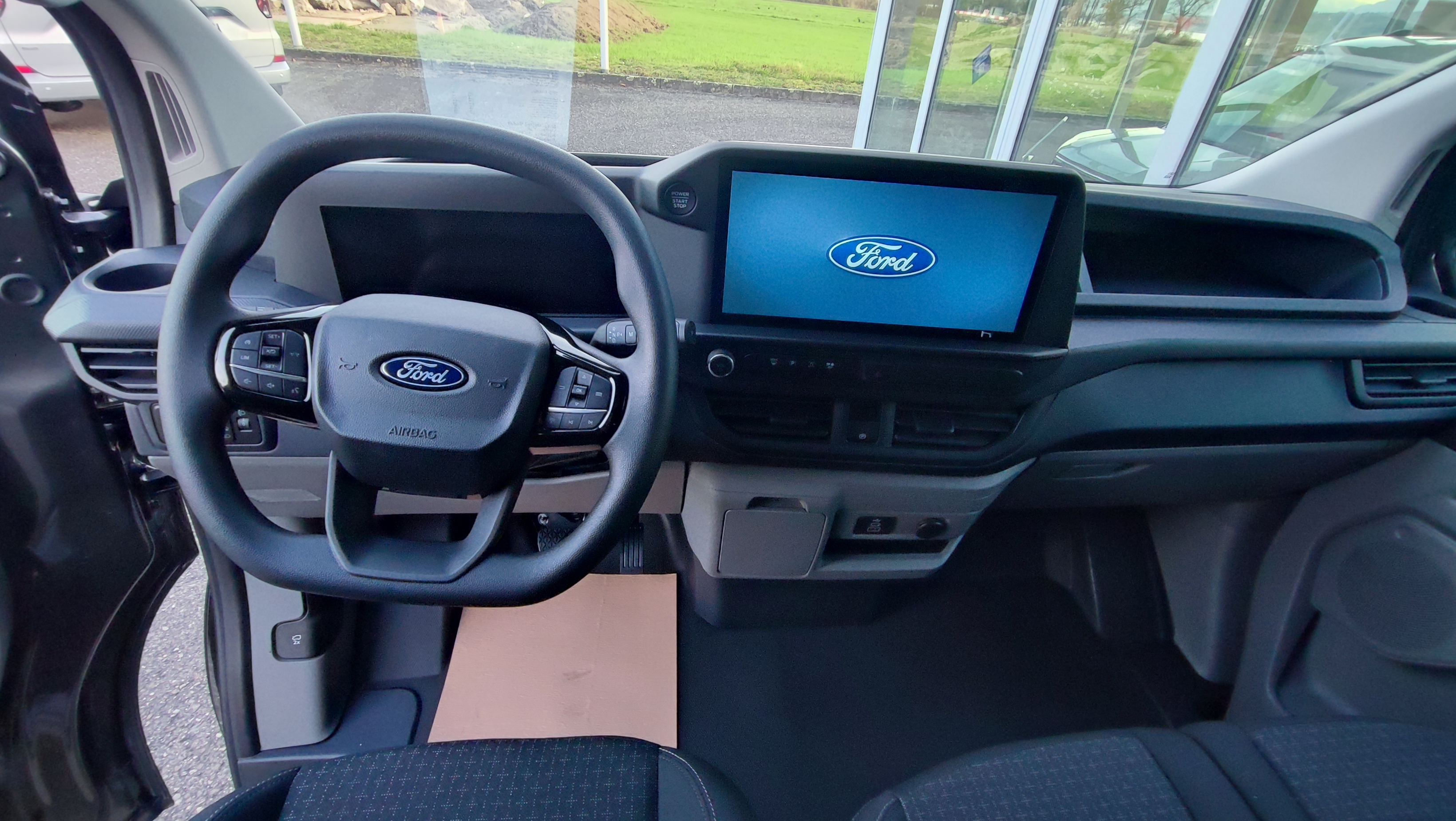 Pack Technologie 2, Schlüsselfreies Starten, Zentralverriegelung mit Fernbedienung, 2 Stufen Entriegelung für Fahrgastraum und Laderaum, Elektrische Fensterheber vorne mit Quickdown für Fahrerseite, Aussenspiegel elektrisch verstellbar und beheizbar, Stop + Start System, Scheibenwischer mit Regensensor, Schiebetüre rechts, Heizbare Frontscheibe, Schmutzfänger vorne + hinten, Radzierblenden, Stahlfelgen 16″, Feststellbremse elektrisch, Dieselpartikelfilter, Airbag Fahrerseite, Notruf-Assistent, Müdigkeitswarner, Reifendruck-Kontrollsystem RDK, Scheinwerfer mit LED-Abblendlicht, ESP mit TCS und Berganfahrassistent, Klimaautomat vorne, Trennwand, Laderaumbeleuchtung LED, Haltegriff für Einstieg Fahrer und Beifahrer, Audiosystem mit 13″ Multifunktionsdisplay SYNC4, 4 Lautsprecher, Pass Connect, Details siehe gültige Preisliste des Importeurs, Keine Gewähr auf die Angaben der Serienausstattungen